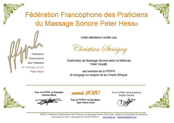 Le massage sonore Peter Hess est fondé sur de nombreuses années de recherches et d´expérience. La méthode originale qui a fait ses preuves n´est pratiquée que par des praticiens ayant été formés